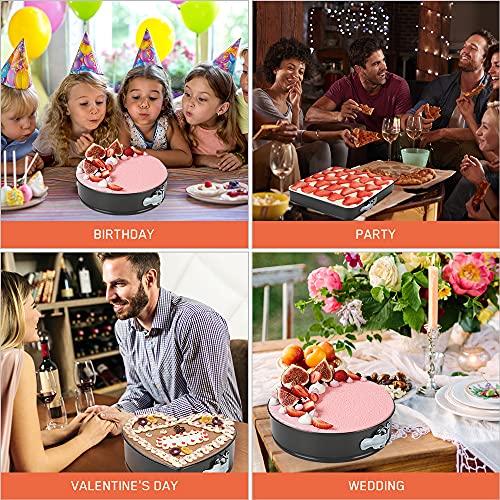 - 【مجموعة من 3 صواني للكيك】: تأتي مجموعة صواني الكيك سبرينج فورم هذه من 3 قطع (9، 10، 11 بوصة) بأشكال مختلفة (صينية كيك على شكل قلب، صينية كيك دائرية، صينية مربعة)، مما يسمح لك بصنع كعكات مختلفة الأشكال تلبي جميع متطلباتك وصنع كعكات أكثر جمالًا لعائلتك وأصدقائك.