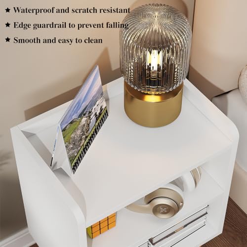 LUCKNOCK - ترابيزة سريرعصرية بتصميم مستوحى من منتصف القرن مع رف تخزين جانبية بسيطة وعملية اثاث غرفة نوم عصرية لاكنوك لون ابيض مادة صناعية