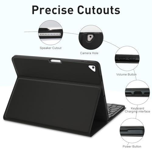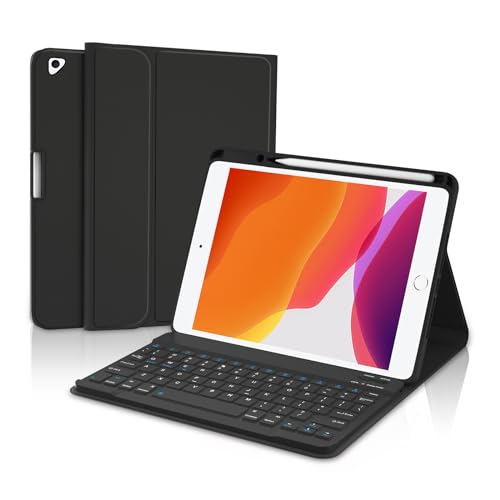 Luckset - حافظة كيبورد لاكست لجهاز ايباد الجيل التاسع 10.2 بوصة الجيل الثامن والسابع (2021/2020/2019) - برو 10.5 بوصة اير 3rd 2017 2019، غطاء مغناطيسي قابل للفصل وقابل للإزالة لاسلكي مع حامل قلم، اسود
