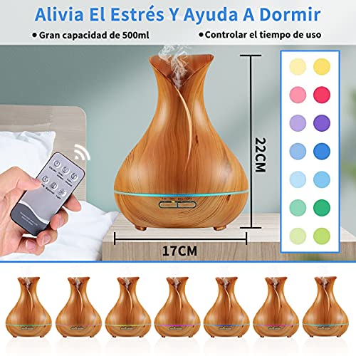 LUCKSO - فواحات زيوت عطرية من لوكسو، جهاز ترطيب بروائح عطرية مع ضوء ليد و14 لونًا ووضعين للإضاءة، منقي للهواء بالزيوت العطرية ومستويان للضباب ومؤقت بالتحكم عن بعد مناسب للهدايا (سعة 550 مل)