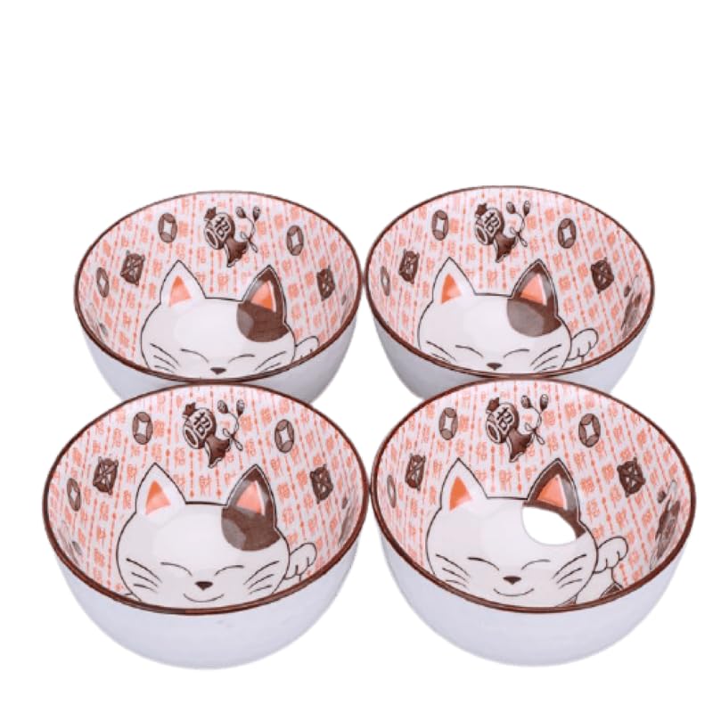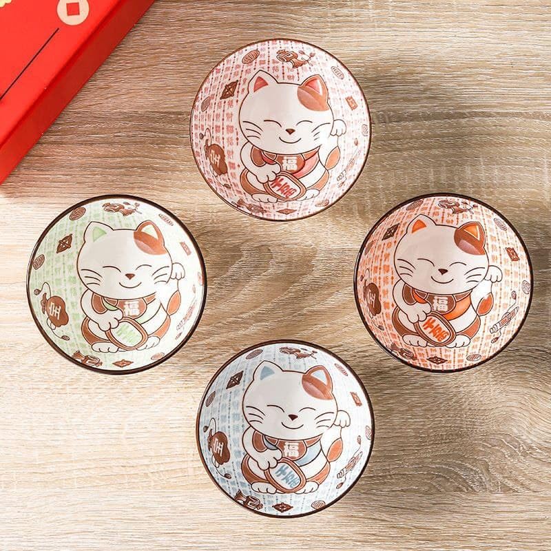 Generic - أطباق سوشي مزخرفة بتصميم القط المحظوظ، مجموعة من ٤ قطع، متعددة الألوان