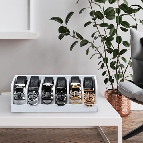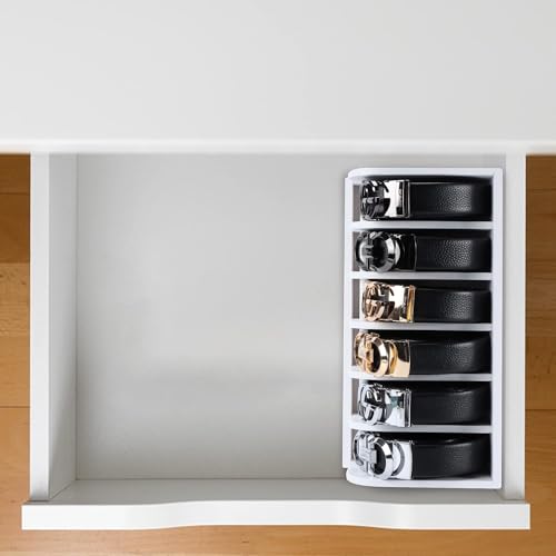 LUCKY-D - صندوق منظم أحزمة من خشب البامبو بـ 6 أقسام، رف للدولاب والأدراج لتخزين وعرض الأحزمة، منظم أحزمة للرجال والنساء من لاكي-دي (أبيض)