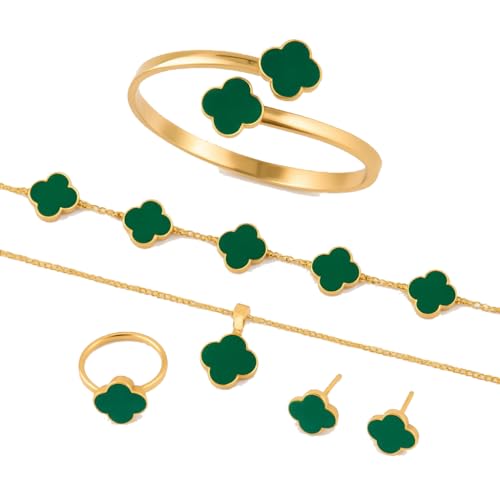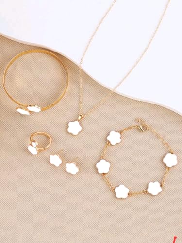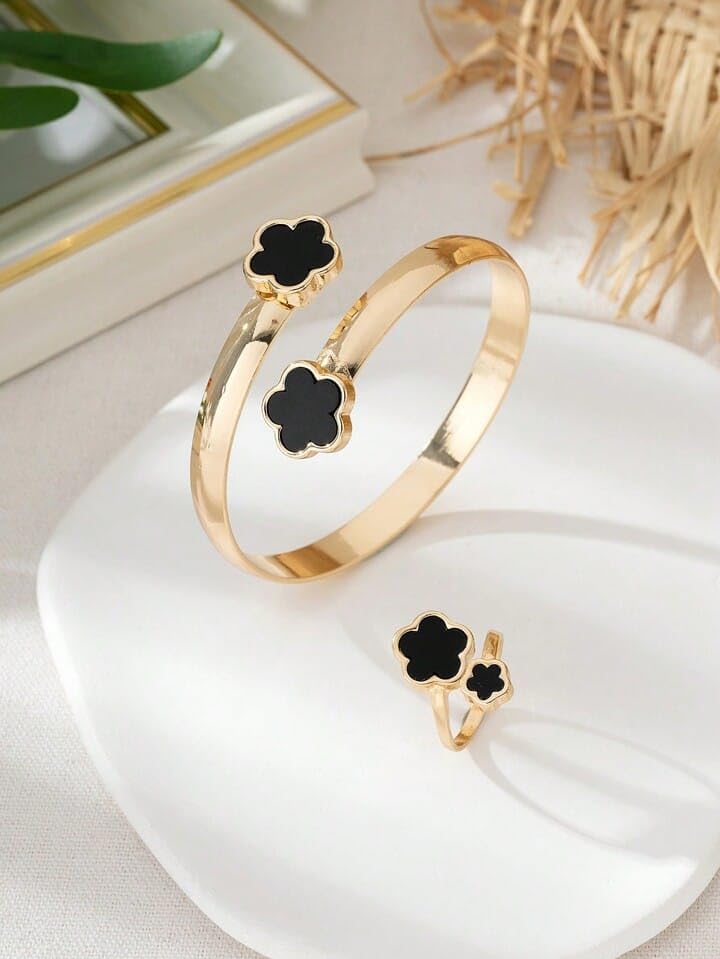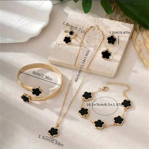 Generic - طقم مجوهرات مكون من 5 قطع، اختيار مثالي للنساء العصريات. مصممة بشكل جميل بنمط زهرة الحظ، تتضمن ملحقات متعددة (مقاس واحد، ذهبي وأسود)