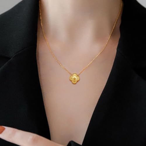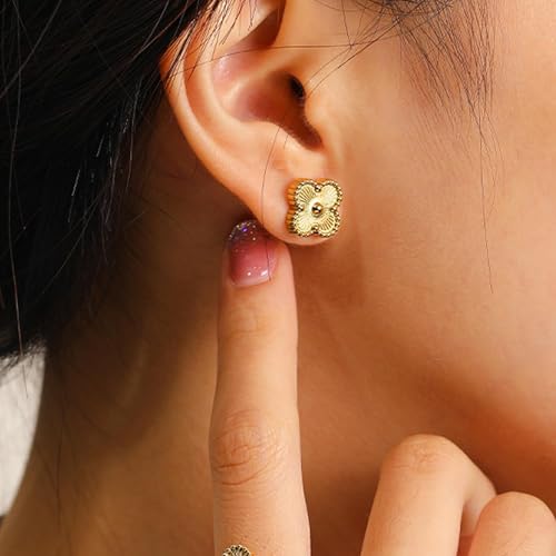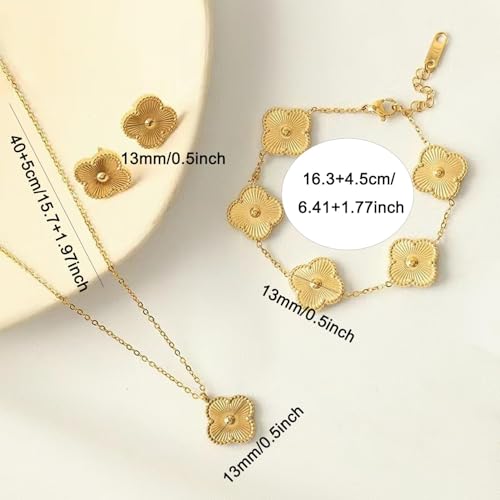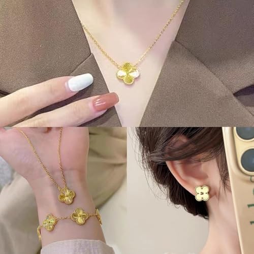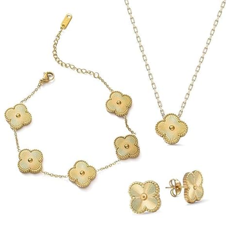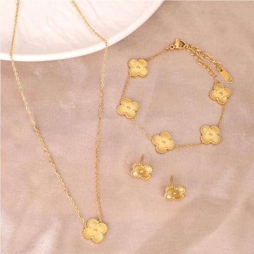 Bajayvovo - مجموعة مجوهرات لاكي بتصميم أوراق البرسيم الأربع، قلادة من ستيل التيتانيوم وقلادة وأقراط وسوار للنساء، مطلية بالذهب على شكل زهرة مطلية بالمينا، سلسلة ملفوفة بنفس التصميم، مجوهرات هدية للبنات