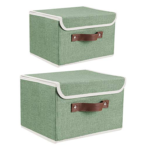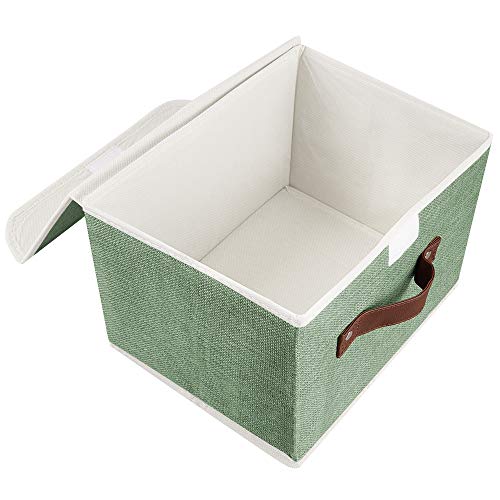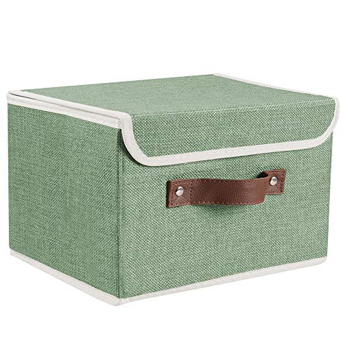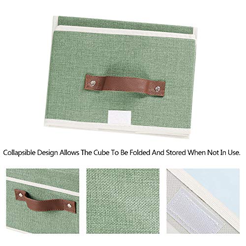 Lucky Monet - مجموعة صناديق تخزين قابلة للطي مصنوعة من قماش الكتان مكونة قطعتين صندوق قابل ومنظم خزانة مكعب مع غطاء ومقبض الجلد الصناعي عبوة لاكي مونت 38 سم × 25 اخضر