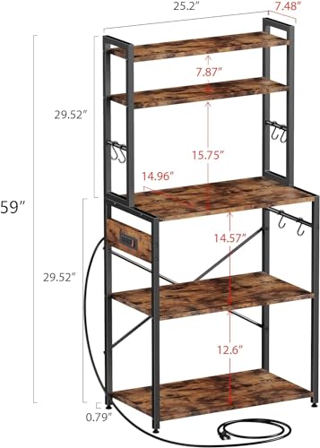 Luckyeestar - رف خباز للمطبخ معدني مع منفذ طاقة متعدد الاستخدامات من 5 طبقات قائم على الأرض ومناسب كمحطة عمل منظمة للميكروويف من لاكي ستار
