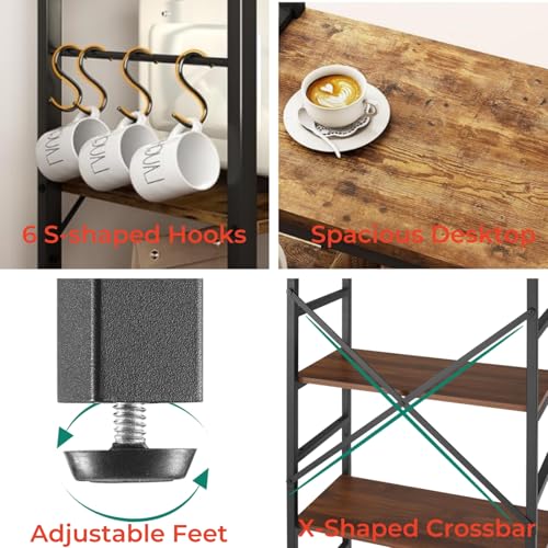 - 【سعة تخزين كبيرة وموفرة للمساحة】: 5 رفوف تخزين توفر مساحة كافية لتخزين مجموعة متنوعة من الضروريات اليومية، مما يحافظ على الخضروات والفواكه والميكروويف وأدوات الطبخ وأدوات تناول الطعام والأطباق وغيرها من اكسسوارات المطبخ مرئية ويسهل الوصول إليها. 6 خطافات مجانية على شكل حرف S مثالية لتعليق فوط المطبخ ومعالق الطبخ. إنها خيارك الأفضل للتخزين وتوفير المساحة.
