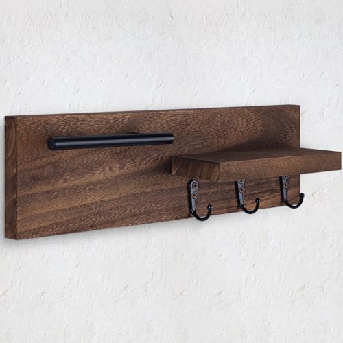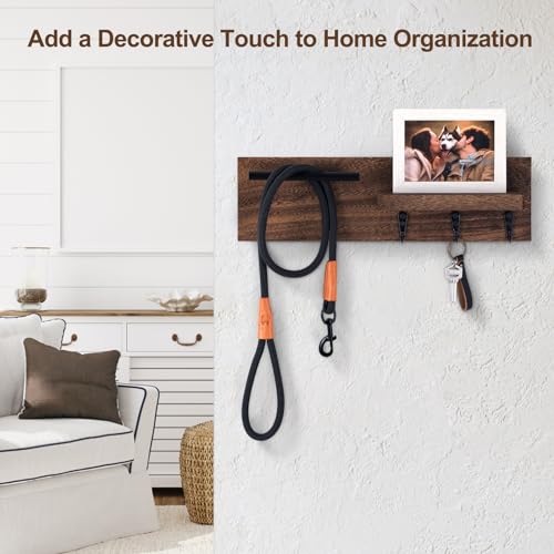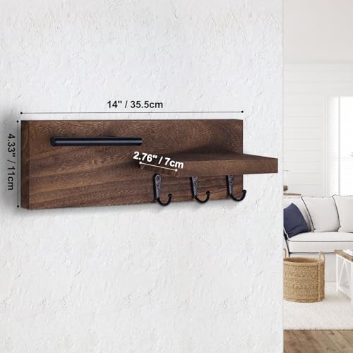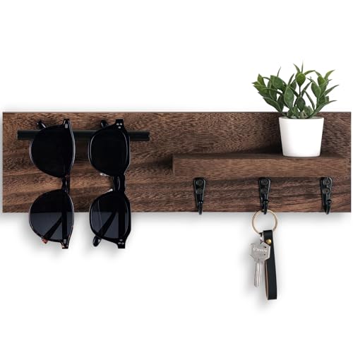 Lucundm - حامل مفاتيح للجدار رف مدخل مزخرف مع خطافات يحمل المفاتيح وسلسلة الكلاب والنظارات الشمسية - شماعة 3 منظمة يعزز ديكور المنزل 15 انش × 4.5 2.6 بني خشب معدن 20.0 رطل 20.0 .