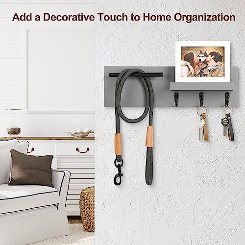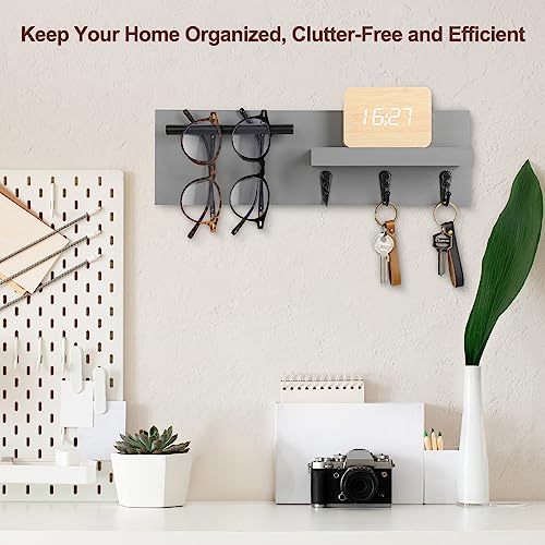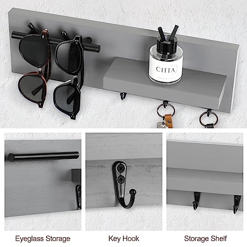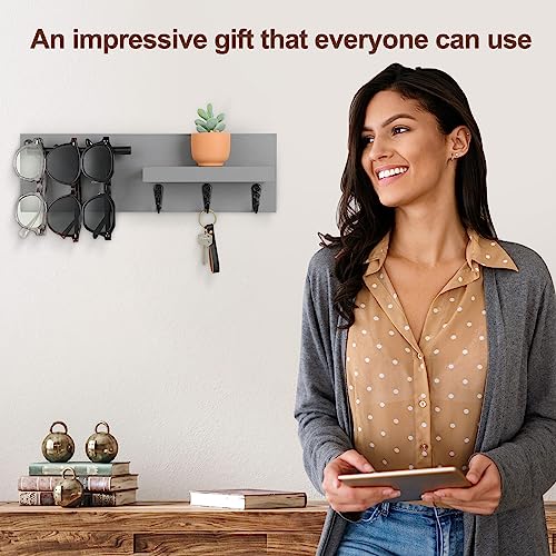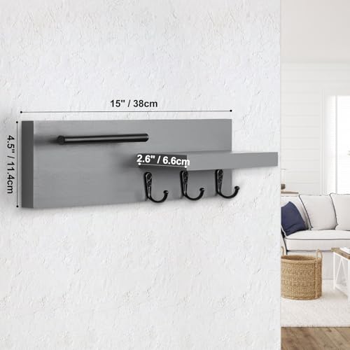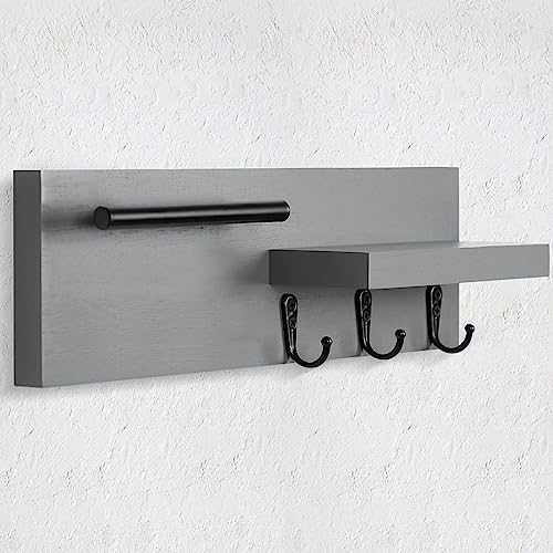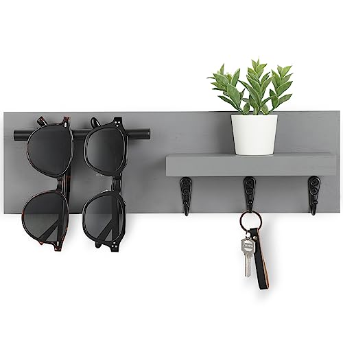 Lucundm - حامل مفاتيح للتثبيت على الحائط رف مزود بخطافات لتعليق المفاتيح وسلاسل الكلاب والنظارات الشمسية مناسب للوضع في المدخل علاقة بـ3 خطافات من لوكوندم 38×11.4×6.6 سم رمادي خشب