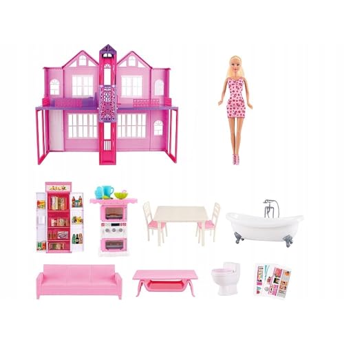 - ملحقات شاملة متضمنة: تأتي مع مجسم دمية واحد، وقطع أثاث بما في ذلك الأريكة وطاولة الطعام مع الكراسي وحوض الاستحمام والمرحاض ورف الكتب ووحدات المطبخ وطاولة القهوة وملصقات زخرفية للتخصيص.