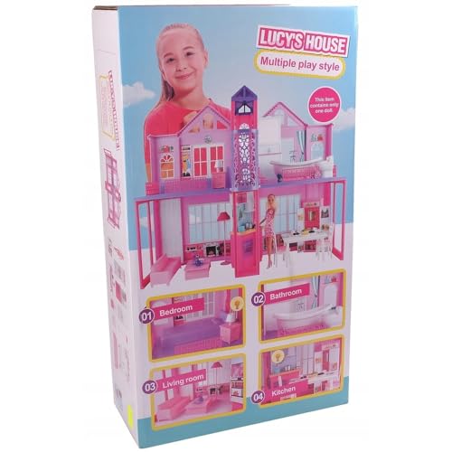 - مجموعة لعب كاملة لبيت الدمى: يتميز منزل لوسي بتصميم متعدد الطوابق مع 4 غرف مفروشة بالكامل بما في ذلك غرفة النوم والحمام وغرفة المعيشة والمطبخ لتجارب لعب الأدوار الغامرة.
