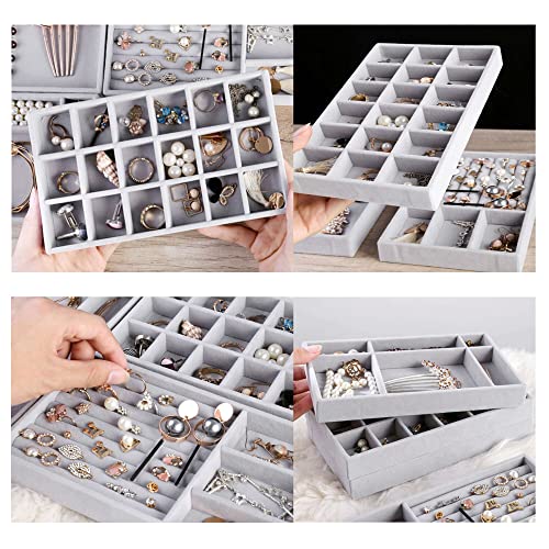 - صواني عرض المجوهرات مصنوعة من المخمل الرمادي الناعم، تحمي مجوهراتك من التلف والخدوش، تعرض كل شيء بشكل مثالي من الأقراط والخواتم إلى القلادات والبروش.