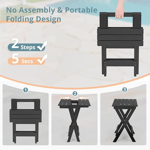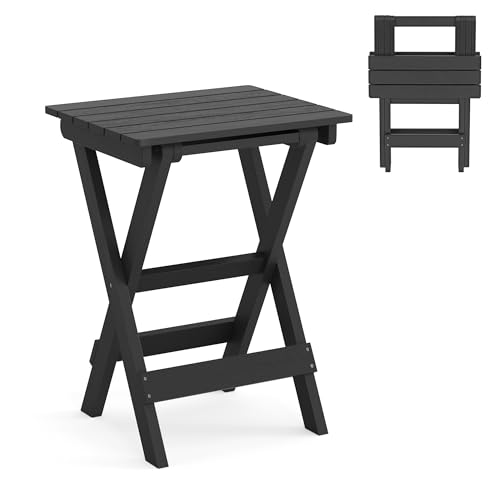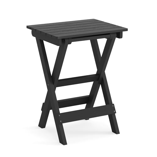 LUE BONA - طاولة جانبية قابلة للطي بمقاس 68 سم مصنوعة من مادة البولي استيرين عالي الكثافة للاستخدام الخارجي على الفناء أو الشرفة أو السطح أو بجانب المسبح مقاومة للعوامل الجوية من ليو بونا باللون الأسود