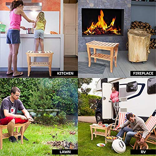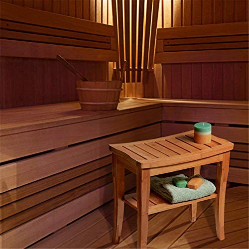 Luffei - مقعد حمام من الخيزران مع رف من طبقتين، مقعد لتغيير الأحذية والحمام والساونا مانع للانزلاق للأماكن الداخلية والخارجية مقاوم للماء - 61× 30 × 45 سم