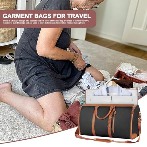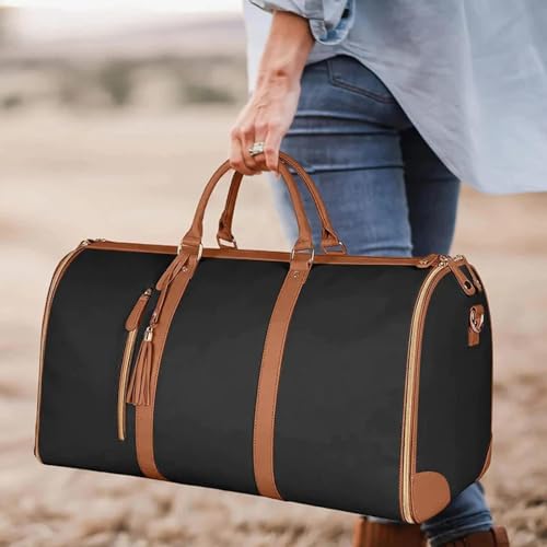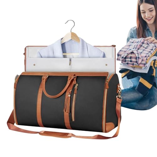 Giwnuq - شنطة أمتعة وملابس بسعة كبيرة للسفر من الجلد الصناعي قابلة للطي وشنطة تعليق 2 في 1 مقاومة للماء للسفر