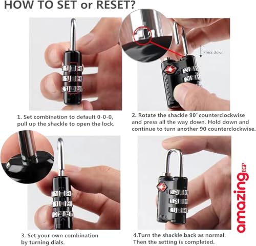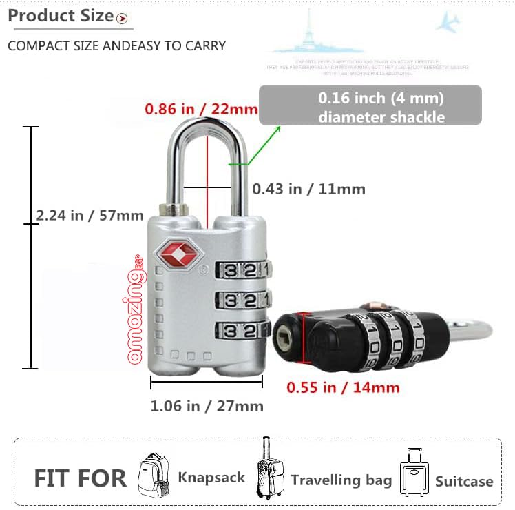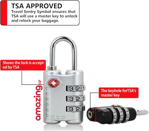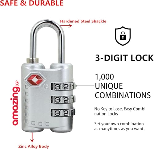 - 🔒【مادة متينة】 أقفال الأمتعة الخاصة بنا معتمدة من إدارة أمن المواصلات الأمريكية مصنوعة من خليط معدني من الزنك. أرقام الرموز الموجودة على قفل الأمتعة تي اس ايه مكتوبة باللون الأسود مع خلفية فضية، مما يوفر سهولة القراءة والتصميم الرائع.