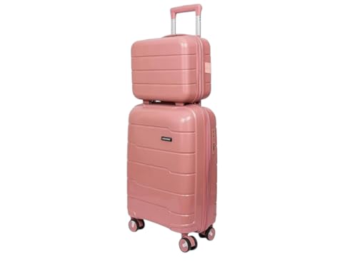 Generic - مجموعة شنط سفر بعجلات مصنوعة البولي كربونات للمقصورة بـ 8 عجلات دوارة وقفل بنظام إدارة أمن النقل قطعتين 50.8 سم 35.56 - لون وردي