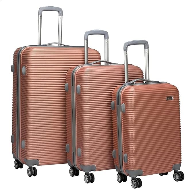 Generic - مجموعة شنط سفر بعجلات 3 قطع لون روز جولد، بولي بروبيلين (PP)