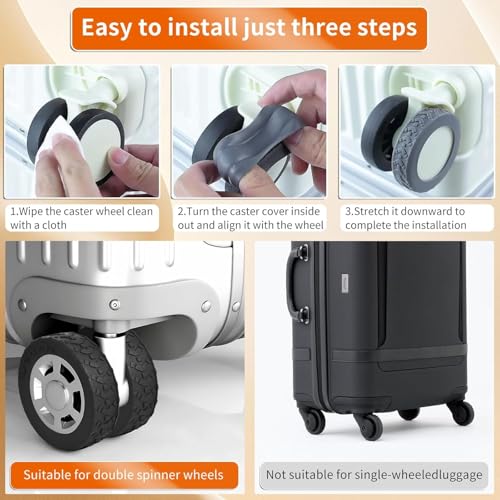 - جودة عالية وهدوء - أغطية شنط السفر الواقية للعجلات مصنوعة من مادة السيليكون غير السامة وعديمة الرائحة مما يجعلها ناعمة للغاية وقابلة للتمدد، ويمكن أن تقلل الضوضاء والاهتزازات والصدمات بكفاءة. كما أن مادة السيليكون مقاومة للماء وسهلة التنظيف وتتحمل الاستخدام طويل الأمد. بالإضافة إلى ذلك، تم ترقية أغطية حماية عجلة شنطة السفر هذه بسمك أكثر سمكًا لمتانة أفضل، يمكنك تركيبها وفكها بسهولة عدة مرات حسب الحاجة.