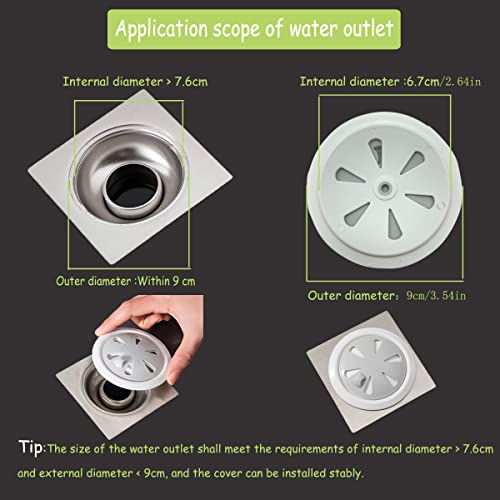 - سهلة التركيب والاستخدام: قطر غطاء مخرج المياه 7 سم - 8.8 سم. ضع الغطاء على مصرف الأرضيات بدون إمالة أو اهتزاز. قم بتدوير المفتاح يدويًا لتصريف وحجب المواد الغريبة. (نصيحة: يرجى التحقق من الرسم الموضح لدينا وقياس حجم مخرج المياه قبل الشراء)
