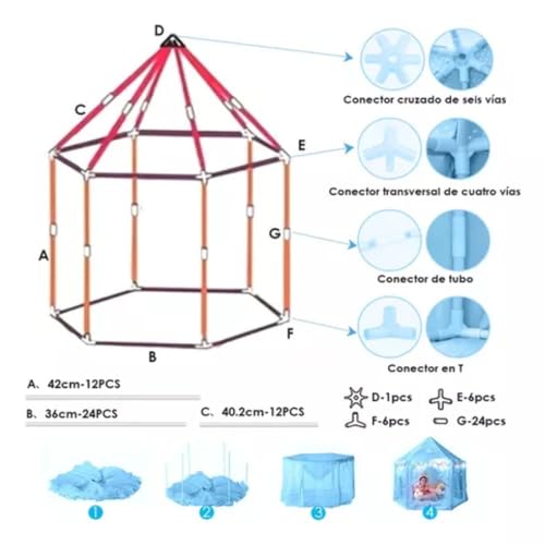 - تجميع سريع وسهل الحمل --- تجميع خيمة الأطفال بسيط للغاية ولا يتطلب أي أدوات. أنابيب وموصلات من بلاستيك PVC عالية الجودة آمنة وسهلة الاستخدام. يمكن طي خيمة قلعة الأميرة بشكل مريح في عبوة صغيرة، مما يجعلها محمولة ومثالية للأنشطة الداخلية والخارجية.