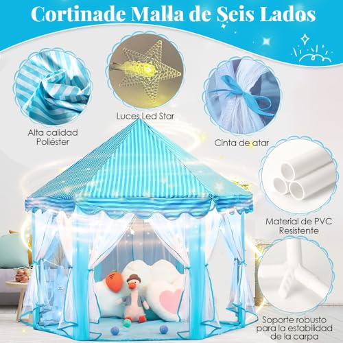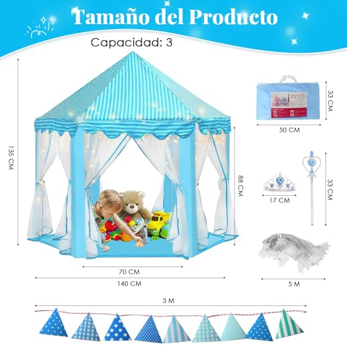 - تجربة خيالية ساحرة --- انقل طفلك إلى عالم سحري مع خيمتنا المستوحاة من القلعة الخيالية. تكتمل هذه الخيمة بأضواء نجوم بطول 16.4 قدم / 5 متر، وتاج وعصا زي الأميرة ومثلث ملون بطول 9.8 قدم/ 3 أمتار، تخلق هذه الخيمة جوًا حالمًا وغامرًا.