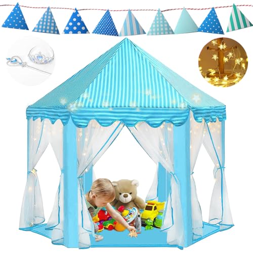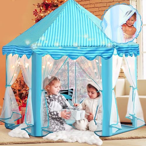 Lukovee - خيمة أطفال للبنات من لوكوف، خيمة أطفال قابلة للطي، لعبة قلعة الأميرة مع ضوء وعصا وتاج، هدية بيت اللعب الداخلي والخارجي للأطفال