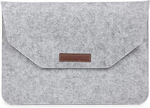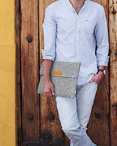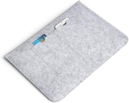 Lukzer - لوكزر حافظة لاب توب للاب مقاس 15.4 انش واقية للجنسين من اللباد الصوفي مع جيوب للبطاقات والجوال رمادي فاتح لماك بوك