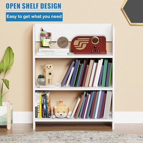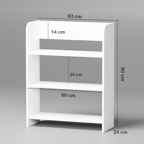 Lukzer - لوكزر رف كتب مفتوح متعدد الاغراض من الخشب الهندسي مكون من 3 طبقات لغرفة المعيشة وغرفة النوم والمكتب (MR-016/ابيض/80 × 63 × 24 سم)