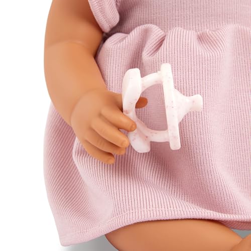 LullaBaby - دمية أطفال مقاس 35 سم - فستان وردي وعيون بنية ولون بشرة زيتونية، لهاية وشريط راس وردية مع فيونكة، لعبة تظاهرية، دمية طفلة، لعمر سنتين فما فوق من لولابابي