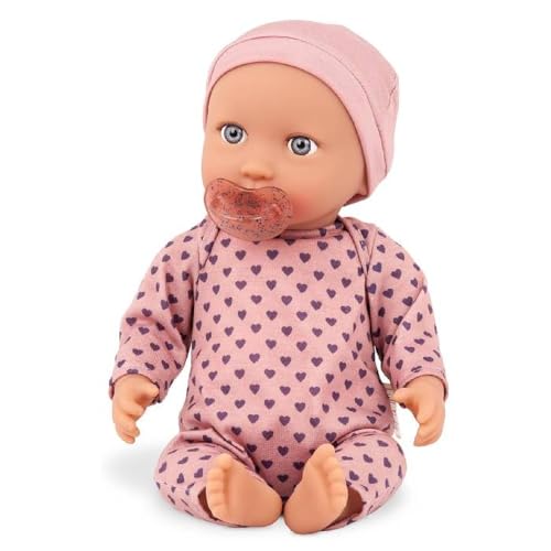 LullaBaby - عروسة لعبة ببيجامة بطبعة قلب مع طاقية وردية، جسم عروسة مع لهاية من لولا بيبي