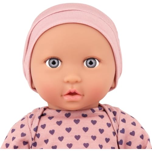 - دمية طفل مقاس 35.6 سم: ترتدي عروسة لولا بيبي الرائعة هذه بيجامة بتصميم قلوب أرجوانية مع شريط رأس على شكل فيونكة ولهاية وجسم ناعم محبوب مصنوع للعناق الصغير.