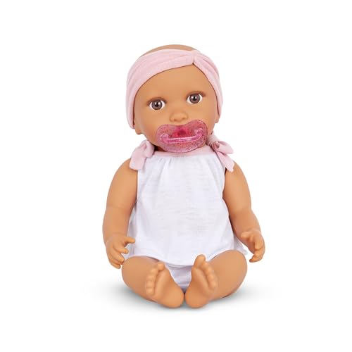 LullaBaby - عروسة بتصميم بيبي بنت ببشرة زيتوني واقعية وعيون بنية من لولا بيبي، جسم مرن وإكسسوارات لهاية قابلة للإزالة، زي وعصابة رأس وردية، لعبة للأطفال من عمر سنتين فما فوق، طول 35.5 سم، متعددة الألوان LBY7225Z