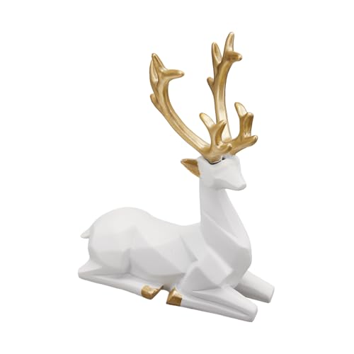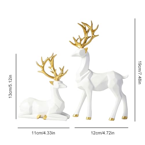 LULU Deer - هدية زينة للكريسماس قطعتان من منحوتات الغزلان الهندسية ثلاثية الابعاد تستخدم لاضفاء جو احتفالي على المدفأة وطاولة الطعام وديكور غرفة المعيشة هندسي ثلاثي ابيض مادة صمغية