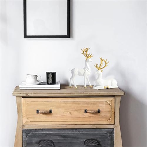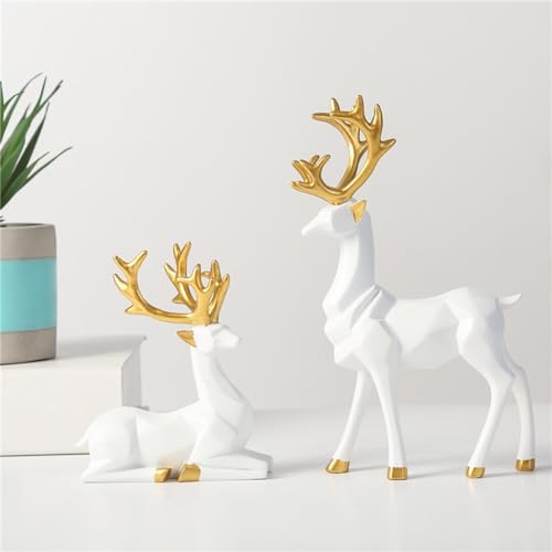 - 【مفهوم التصميم】- مجموعة فريدة من منحوتتين على شكل حيوان الرنة هي ديكور مذهل يبرز في ترتيب الفاصل الخاص بك وله تأثير فني على الديكور الخاص بك. يتميز تصميم تمثال الغزلان بخطوط دقيقة وبساطة وحيوية، مما يجعل منزلك بسيطًا ويضيف الهدوء والجمال إلى أي بيئة. مجهزة بقرون ذهبية. ترمز الغزلان إلى القوة والقوة، وستجلب لك الثروة والحظ السعيد.