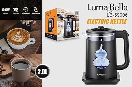 Generic - غلاية مياه كهربائية من زجاج كاتيل سعة 2 لتر وقدرة 1500 وات من لوما بيلا