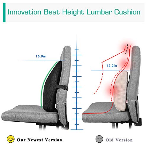 Mkicesky - مخدة دعم أسفل الظهر لكرسي المكتب/السيارة، مخدة دعم الظهر من فوم الذاكرة مع مصحح وضعية كامل لتخفيف آلام أسفل الظهر من مكيسيسكي