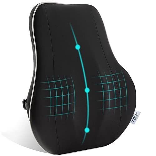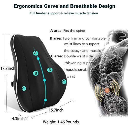 Samflykaka - وسادة دعم أسفل الظهر، وسادة ظهر من ميموري فوم، غطاء شبكي ثلاثي الأبعاد مزود بمسامات للتهوية وحزام قابل للتعديل مسند ظهر لتقويم العظام وتصميم مريح لتخفيف ألم الظهر دعامة ظهر لكرسي المكتب ومقعد السيارة