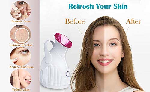 - 👍مثالي لجميع أنواع البشرة: جهاز بخار الوجه مثالي لجميع أنواع البشرة. يساعد على توضيح صفاء البشرة ويجعلها أكثر تقبّلًا لعلاجات العناية، مما يمنح مظهرًا أكثر ترطيبًا ونعومة. يستخدم جهاز البخار مولّد ايونات يعمل على إثراء جزيئات الماء، مما يساعد البخار على التغلغل والتنظيف بعمق أكبر.