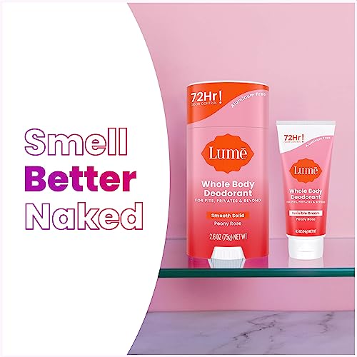 LUME - مجموعة مزيل عرق لكامل الجسم مكونة من أنبوب كريم صغير غير مرئي + عبوة صابونة صلبة للتحكم في الرائحة 72 ساعة، خالٍ من الألومنيوم وبيكربونات الصوديوم لمحبي العناية بالبشرة من لومي (رائحة زهرة الفاوانيا)