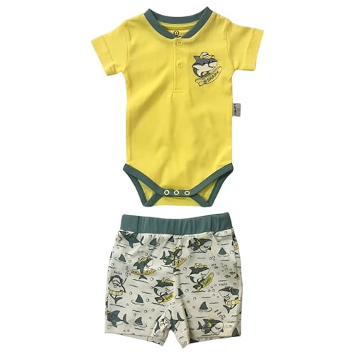 Lumex - طقم مكون من قطعتين من سالوبيت بكباسين نصف كم وشورت بطبعة أسماك القرش، طقم من قطعتين سالوبيت بكباسين نصف كم وشورت (عبوة من قطعة واحدة) من لوميكس