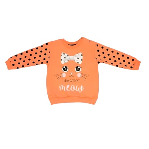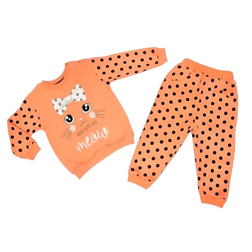 Lumex - لومكس طقم بيجامة قطن مكون من سويت شيرت باكمام طويلة وبنطلون مطبوع عليه قطة لطيفة جدا للبنات، لون برتقالي، لعمر 18-24 شهر