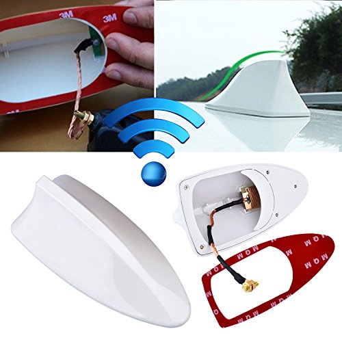 - هوائي راديو السيارة بتصميم زعنفة القرش مصنوع من بلاستيك ABS عالي الجودة بلون اسود مع لاصق وكيبل توصيل اف ام/ايه ام بالداخل.