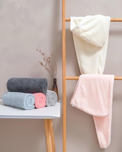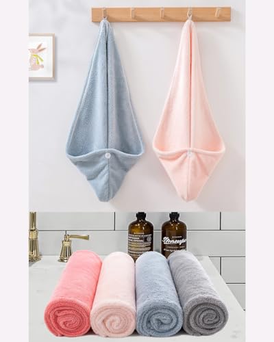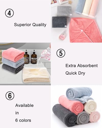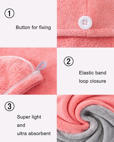 Lumimi - لوميمي مجموعة من 2 فوطة رأس مصنوعة المايكروفايبر فائقة الامتصاص سريعة الجفاف بازرار للاغلاق لون بينك- رمادي مقاس واحد