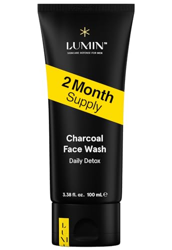 Lumin - غسول الوجه اليومي بالفحم للتخلص من السموم للرجال من لومين- منظف الفحم، غسول وجه للرجال بالفحم، غسول وجه للرجال فحمي، مناسب لجميع أنواع البشرة، 100 مل، عبوة من 1 قطعة