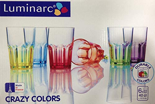 Luminarc - طقم اكواب زجاج كريزي كولرز من لومينارك، 6 قطع، 400 مل - متعددة الالوان