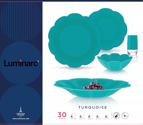 Luminarc - طقم عشاء من 30 قطعة من لومينارك (لون تركواز فلورسنت)
