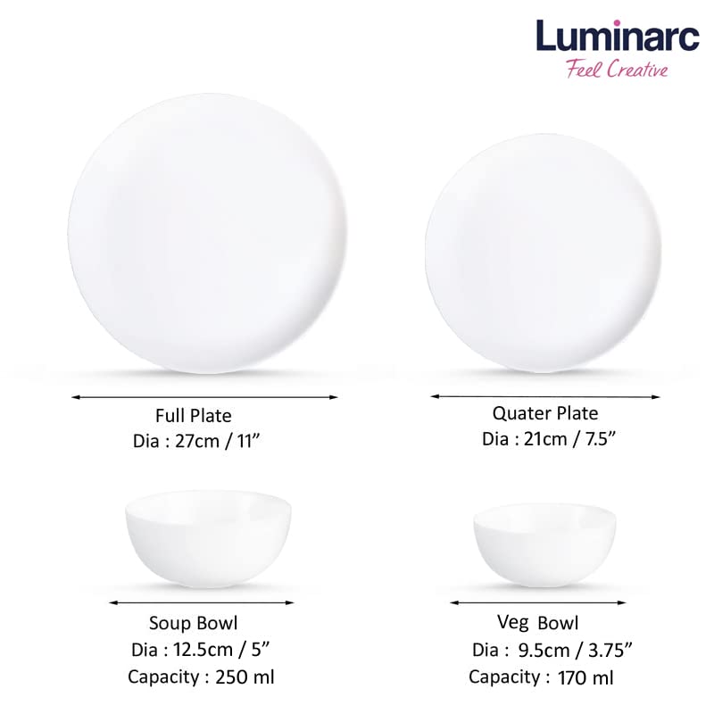 Luminarc - طقم عشاء من الاوبال بتصميم فرنسي من 24 قطعة بلون أبيض من لومينارك - صنع في الإمارات العربية المتحدة