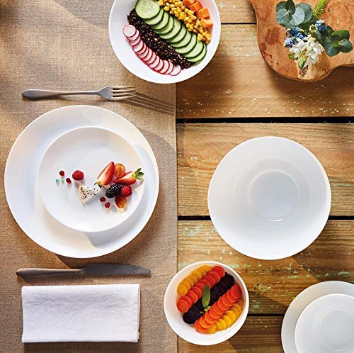 - طبق عشاء 28 سم (6 قطع) - طبق ربع 21 سم (6 قطع) - بولة للشوربة 310 مل (6 قطع) - بولة للخضروات 190 مل (6 قطع).