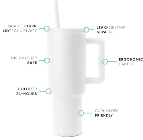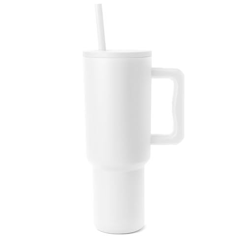 LuminLi - كوب عصري سعة 40 اونصة بمقبض وغطاء بماصة من لومينل | كوب معزول قابل لاعادة الاستخدام من الستانلس ستيل مناسب للسفر | هدايا للنساء (ابيض الشتاء، 40 اونصة)